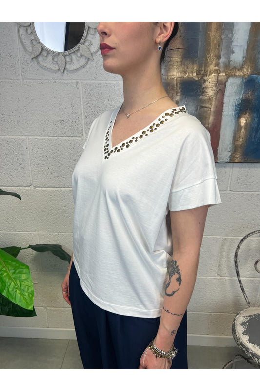 T-shirt v con borchiette Souvenir