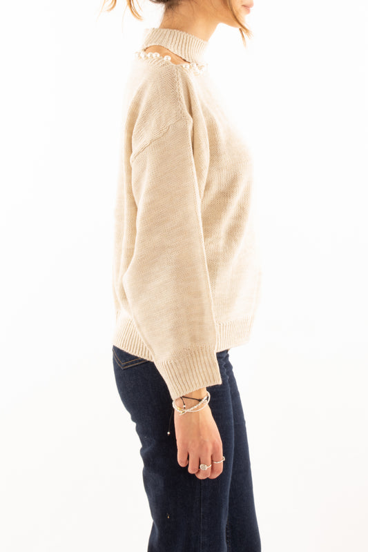 Maglione con manica palloncinomisto lana Susy mix - Crema