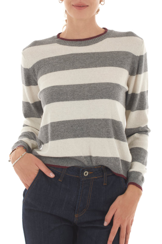Maglione misto cachemire rigato da Donna Susy mix - Grigio