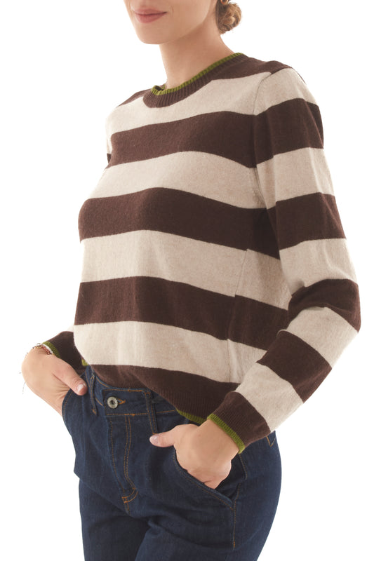 Maglione misto lana con profili da Donna - Mastice