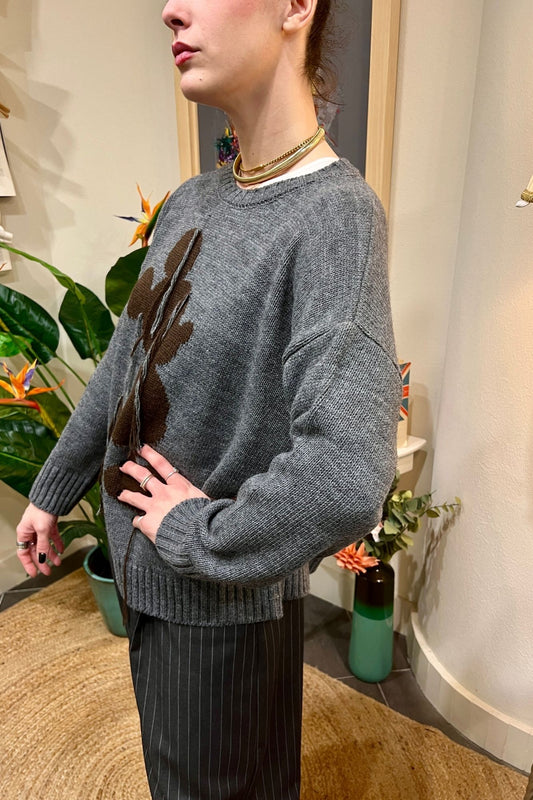 Maglione misto alpaca con treccia Susy mix - Grigio