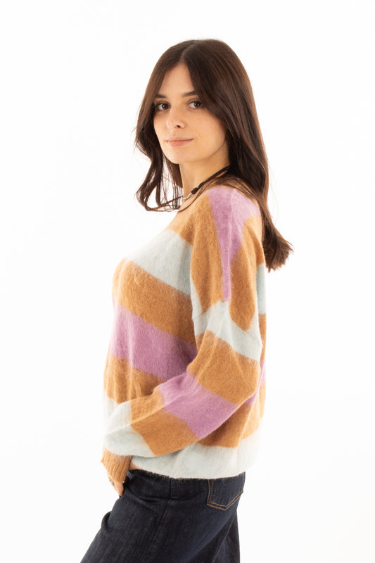 Maglionemisto mohaie a v rigato Susy mix - Cammello