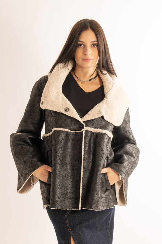Montone eco doppio petto Susy mix - Nero