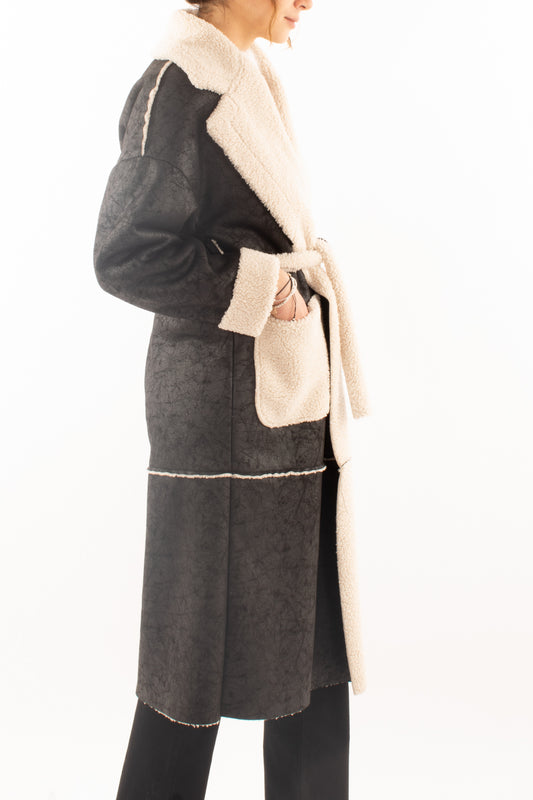 Montone eco lungo doppio petto Susy mix - Nero