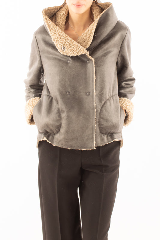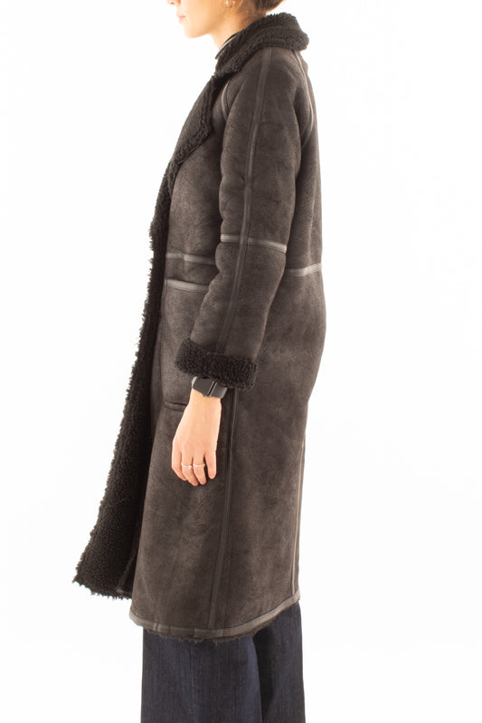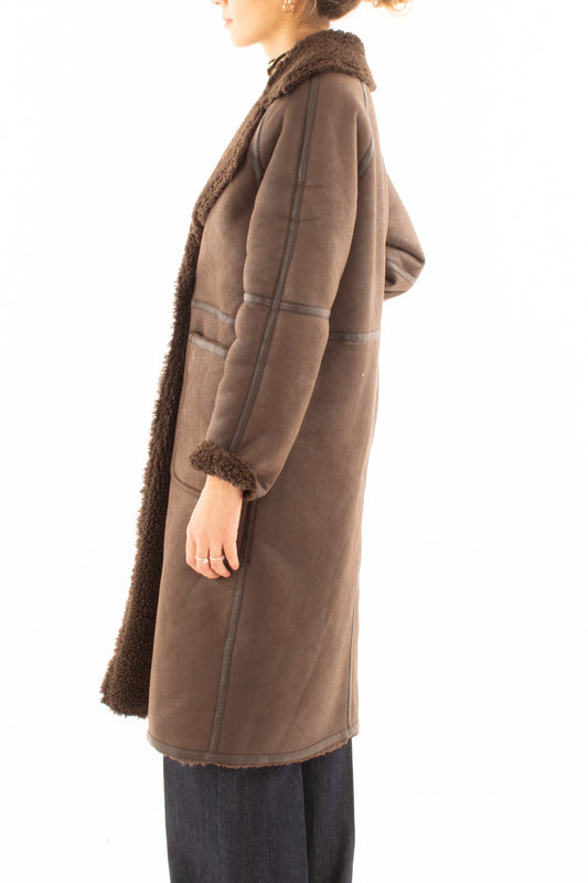 Montone eco lungo doppio petto Susy mix - Moro