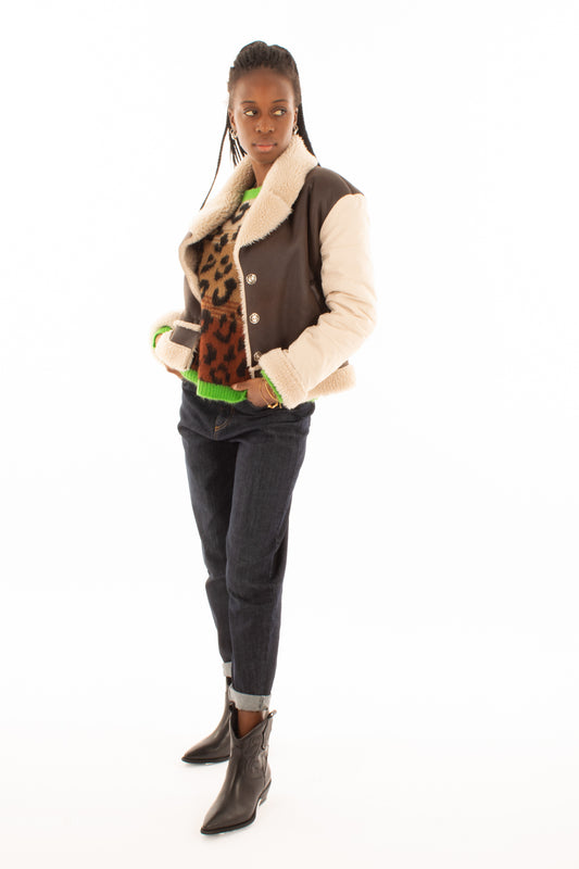 Montone eco corto con zip Susy mix - Moro
