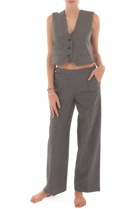 Pantalone a palazzo di paillettes Susy mix - Grigio