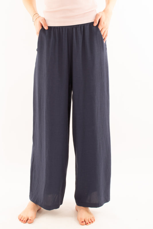 Pantalone a palazzo in lino e viscosa da Donna Metoo - Blu