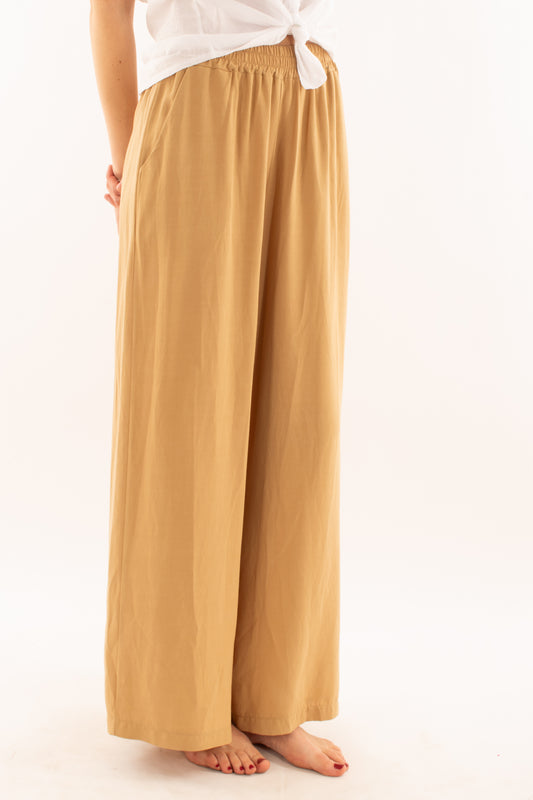Pantalone a palazzo in lino e viscosa da Donna Metoo - Sabbia