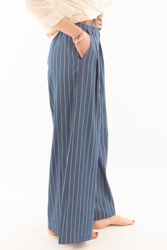 Pantalone a palazzo gessato da Donna Susy mix - Blu