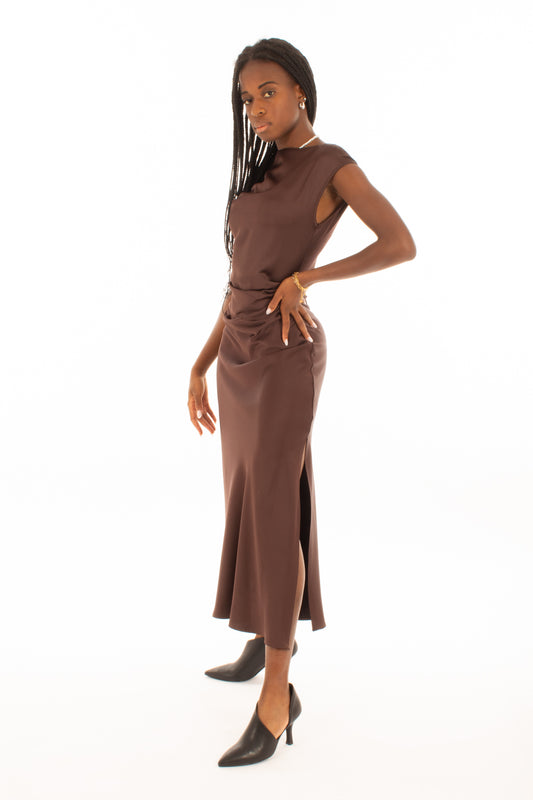 Abito lungo con drappeggio da Donna Imperial - Almond
