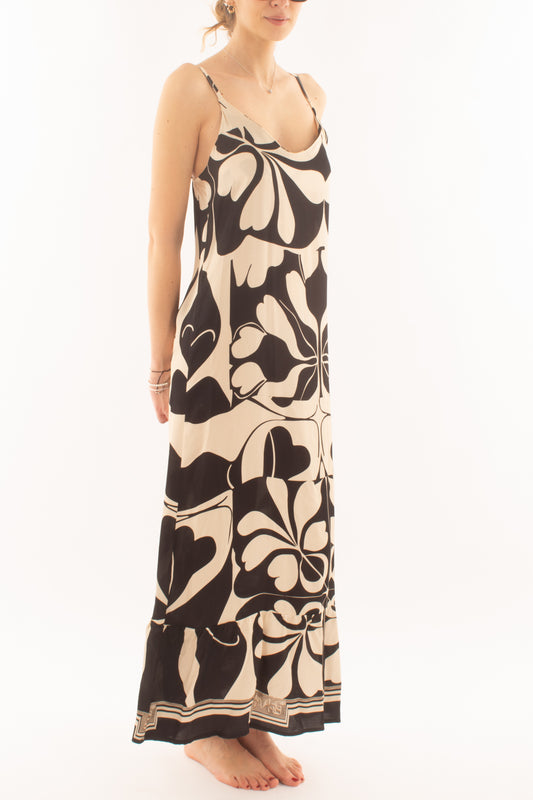 Abito lungo fantasia in viscosa da Donna Susy mix - Nero