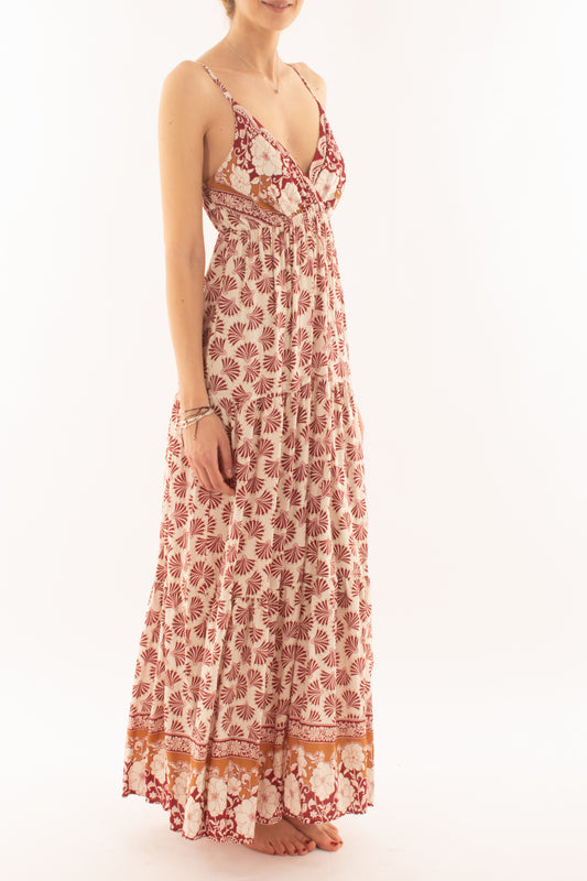 Abito lungo fantasia in viscosa da Donna Susy mix Rosso india