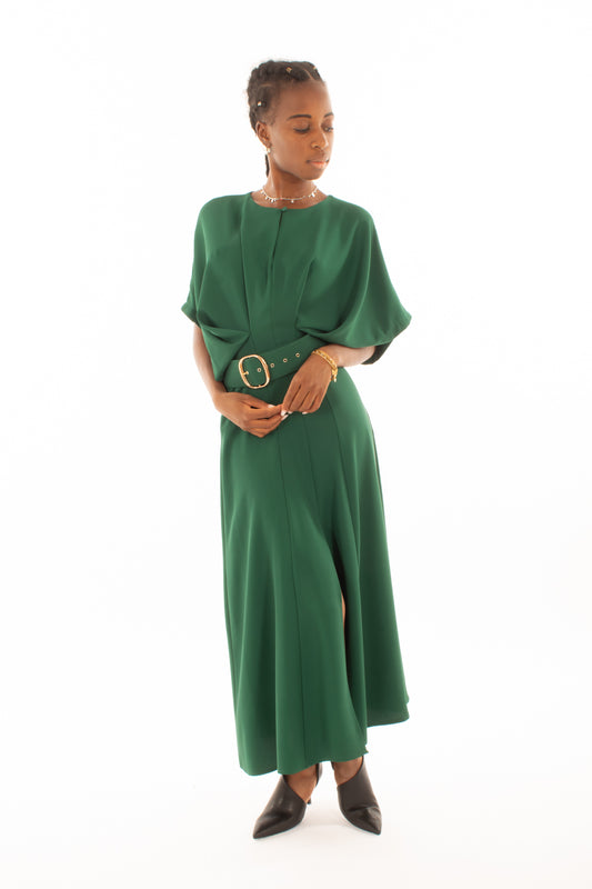 Abito lungo in viscosa allaccaito al collo da Donna Metoo - Verde
