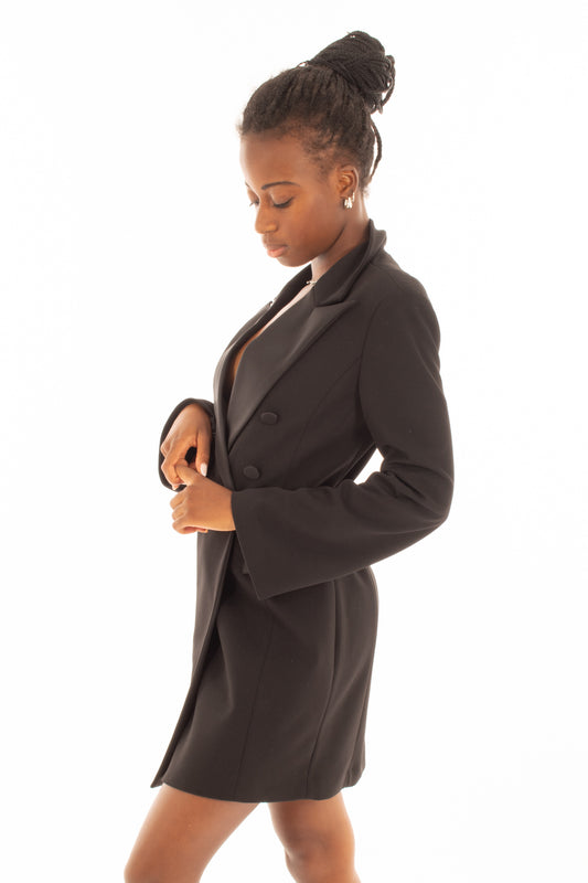 Abito robemanteau doppio petto in raso Imperial - Nero