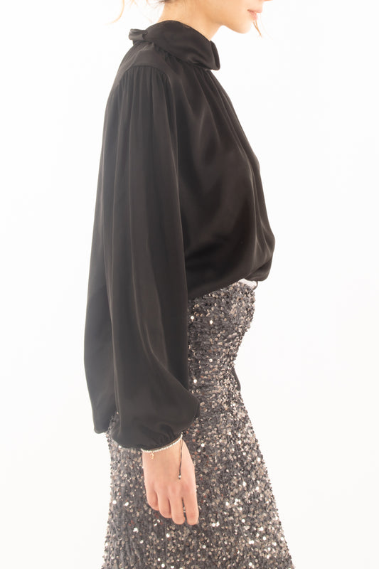 Blusa in viscosa con pieghe Dixie - Nero