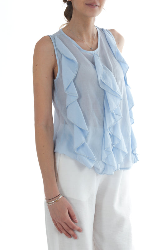 Blusa smanicata con rouge da Donna Susy mix - Cielo