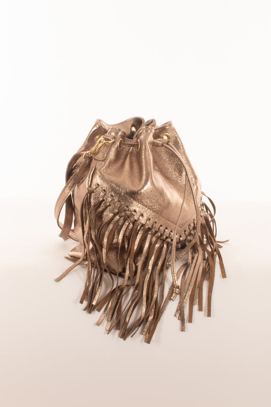Borsa a secchiello con frange da Donna Metoo - Oro