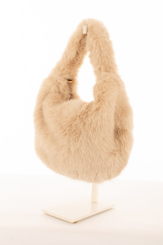 Borsa mezza luna teddy e pelle Metoo - Burro