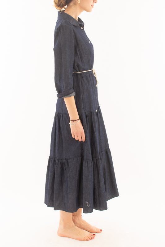 Abito Chemisier con rouge in Viscosa Miamata - Blu