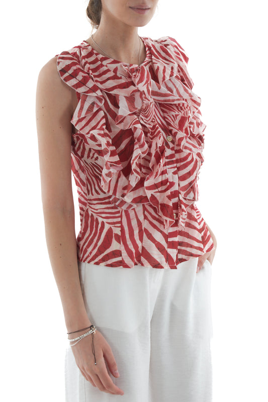 Camicia smanicata con rouge da Donna Susy mix Rosso india