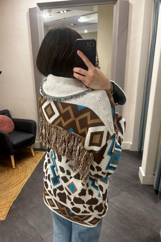 Cardigan aperto con frange Susy mix Elitè -Burro