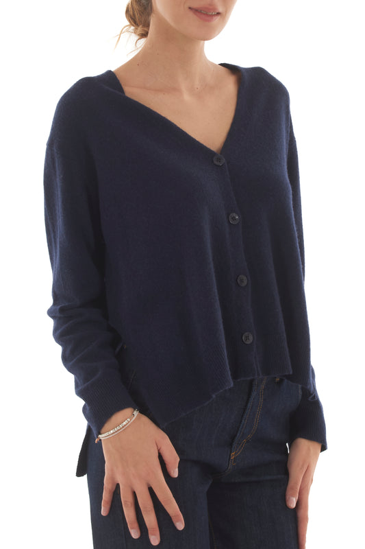 Cardigan con spacchi laterali misto cachemire Metoo - Blu