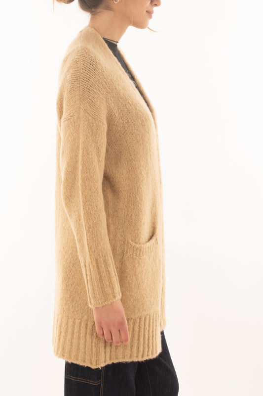 Cardigan da donna lungo aperto Metoo - Sabbia