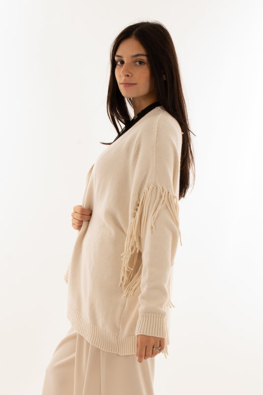 EsauritoCardigan con frange Motel - Crema