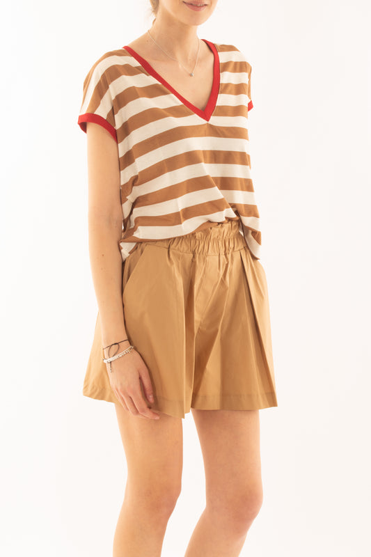 Maglia a v rigata da Donna Susy mix - Sabbia