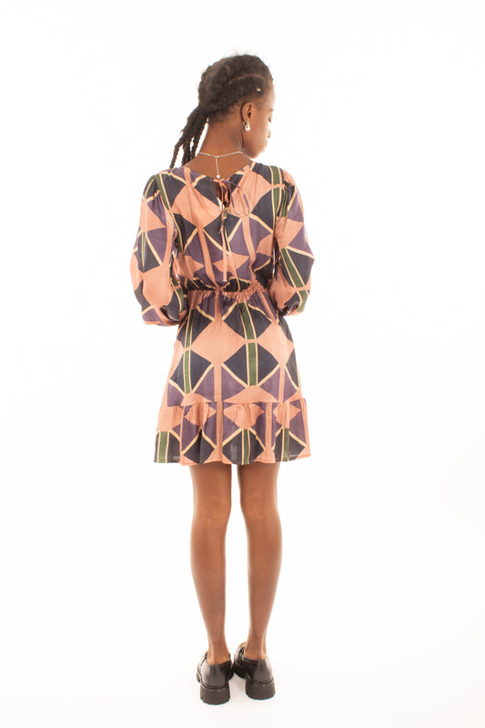 Abito fantasia geometrica in Viscosa Miamata - Rosa