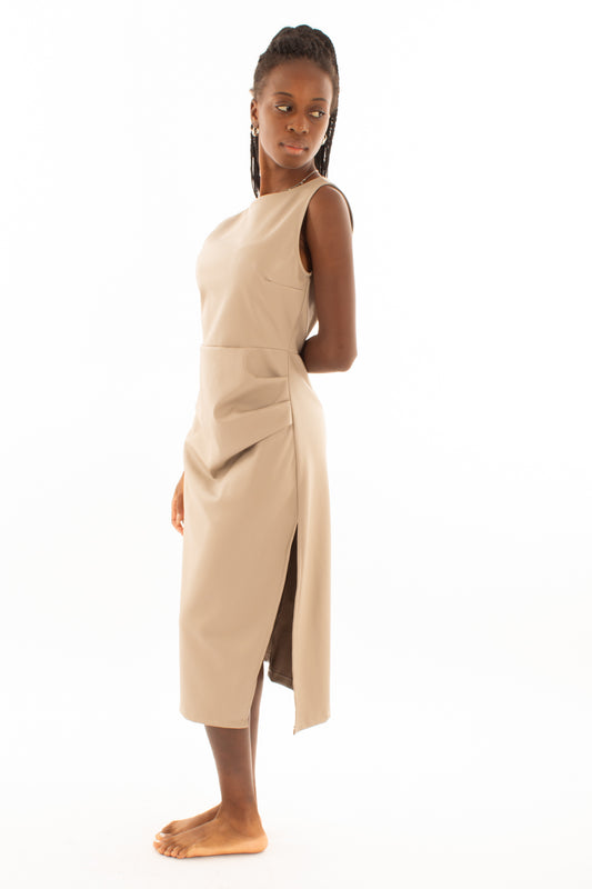 Abito ecopelle lungo con drappeggio Motel - Pergamena