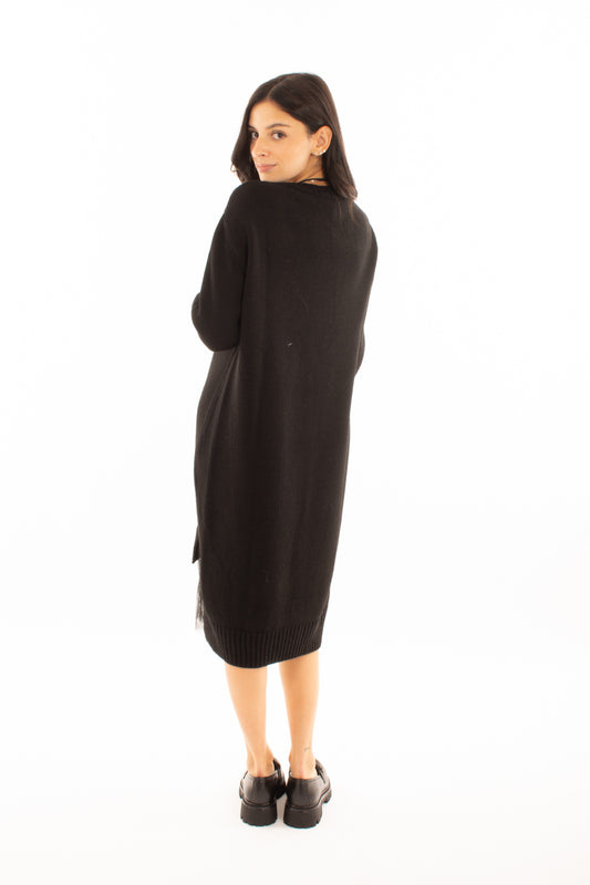 Abito di lana con tulle Susy mix - Nero