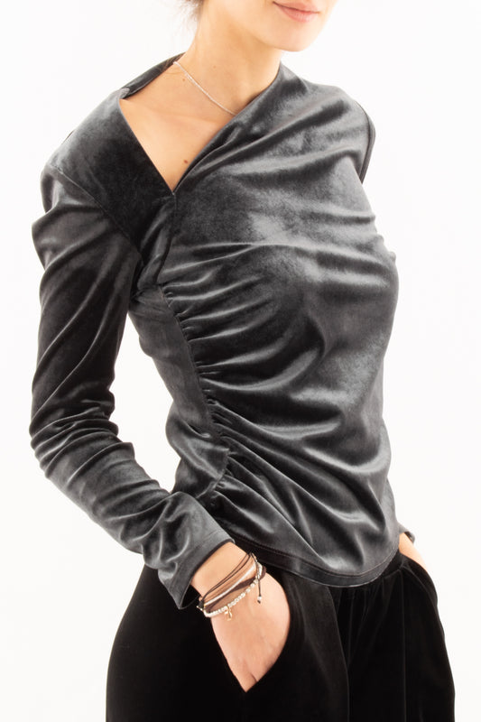 Maglia in velluto liscio con drappeggio di lato Motel - Grigio