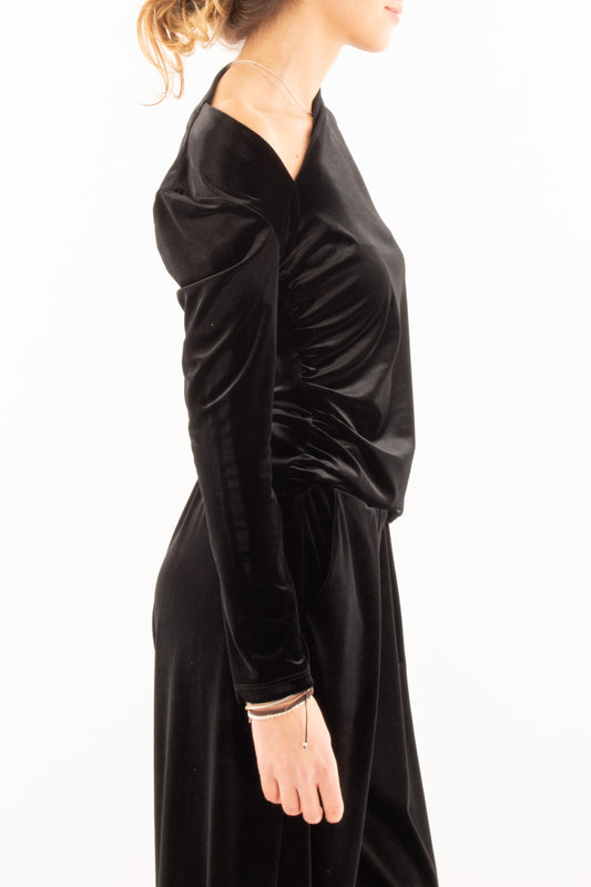 Maglia in velluto liscio con drappeggio di lato Motel - Nero