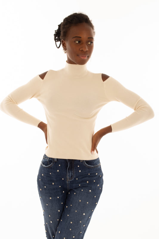 Maglia lupetto buchi spalla Susy mix - Ottanio