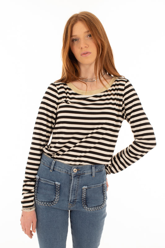 EsauritoMaglia rigata con lurex Metoo- Nero