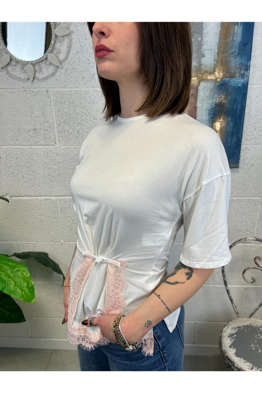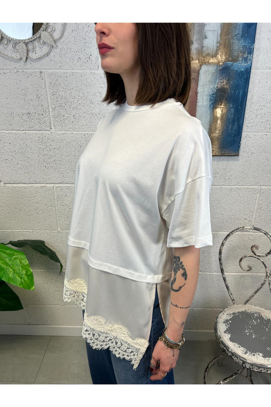 T-shirt asimmetrica con pizzo Susy mix