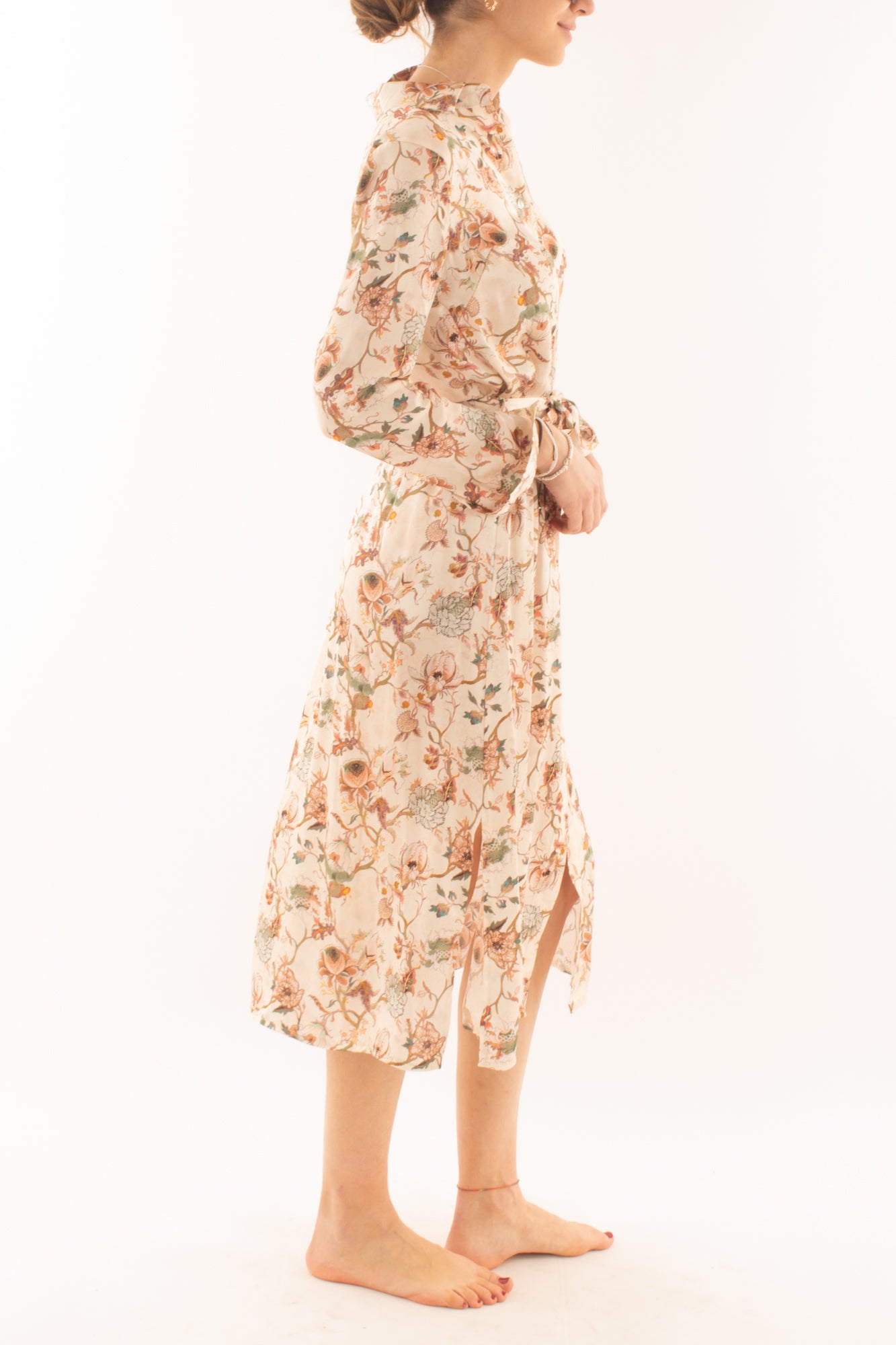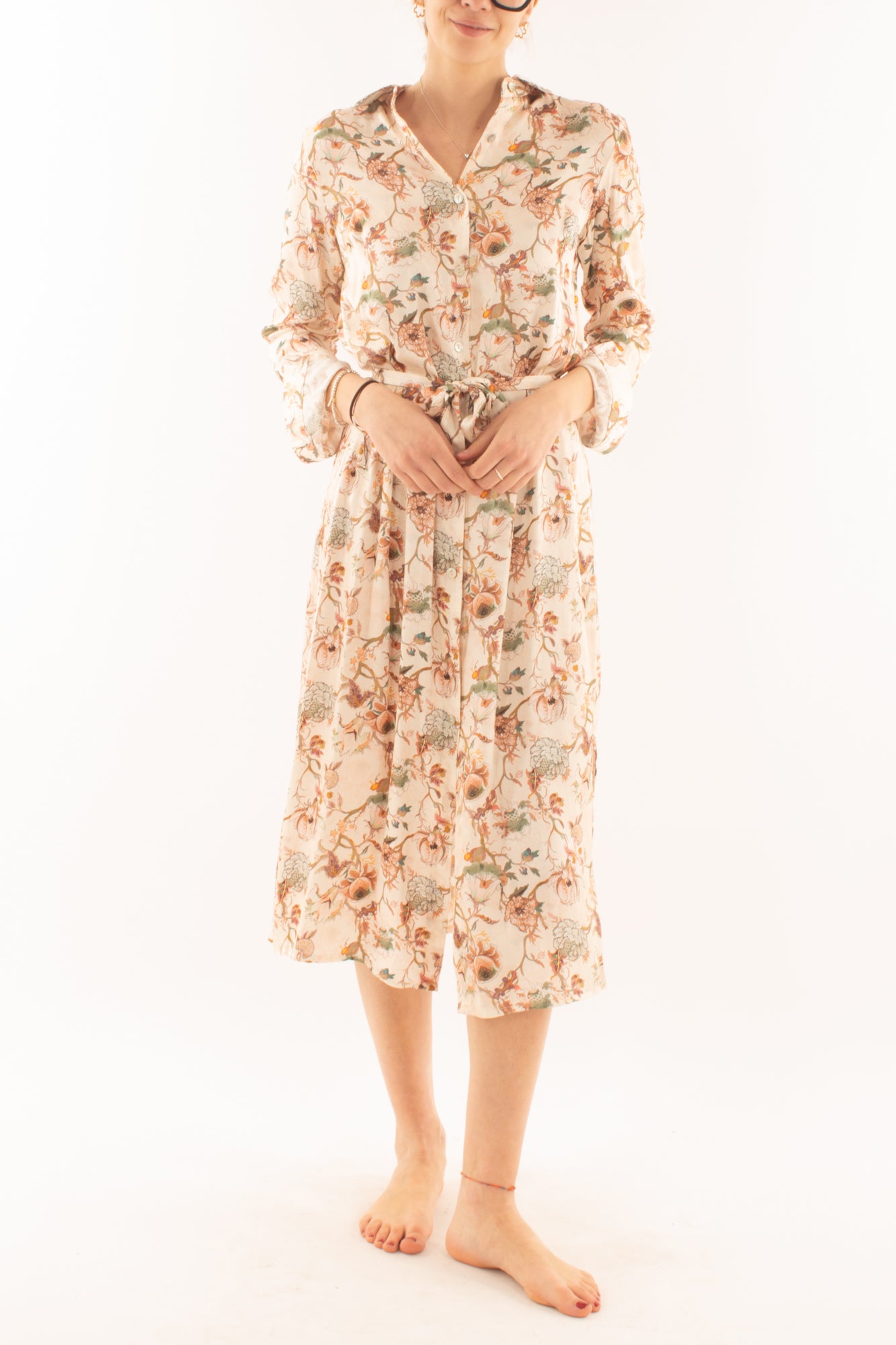 Scopri l'eleganza senza tempo dell'abito lungo a chemisier con maniche lunghe e fantasie vivaci in morbida viscosa. Perfetto per un look raffinato e femminile, questo capo unisce stile e comfort con un tocco di originalità.
