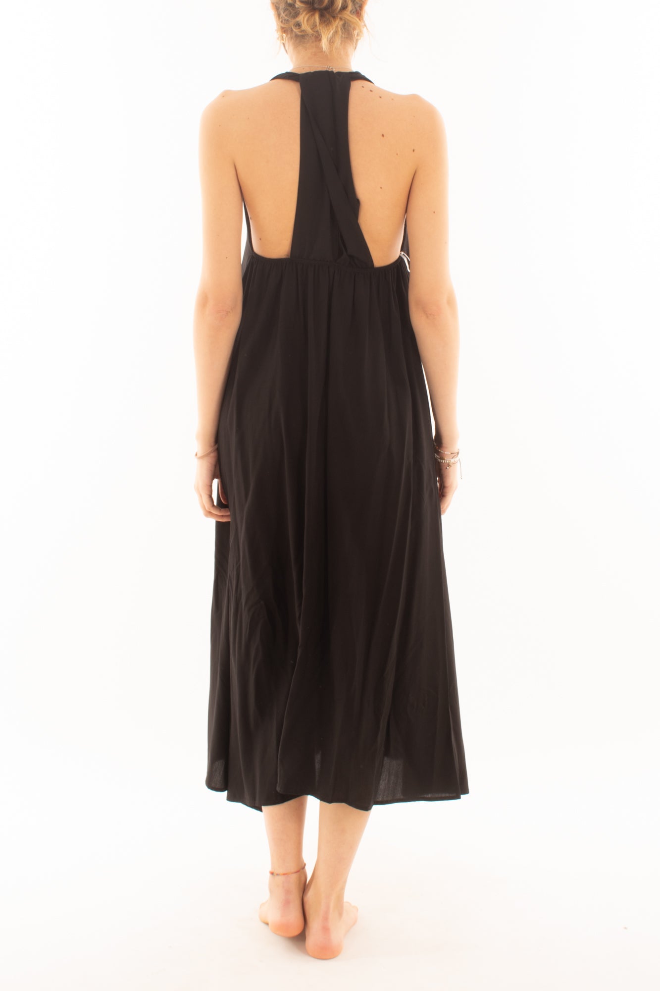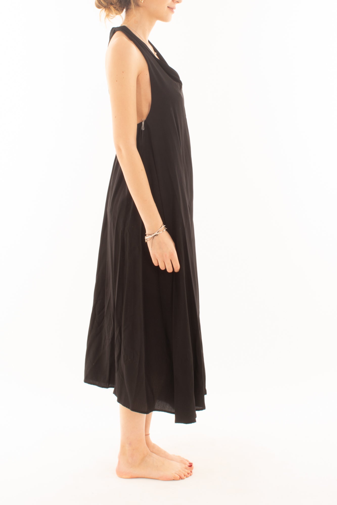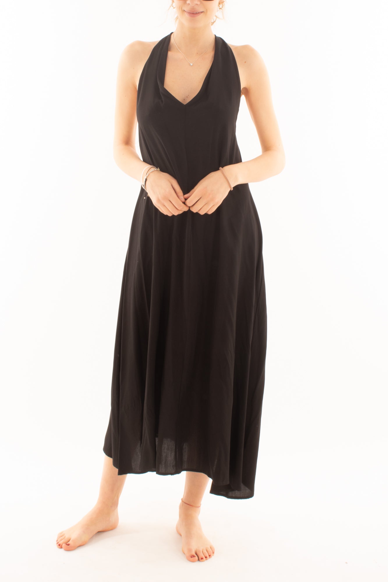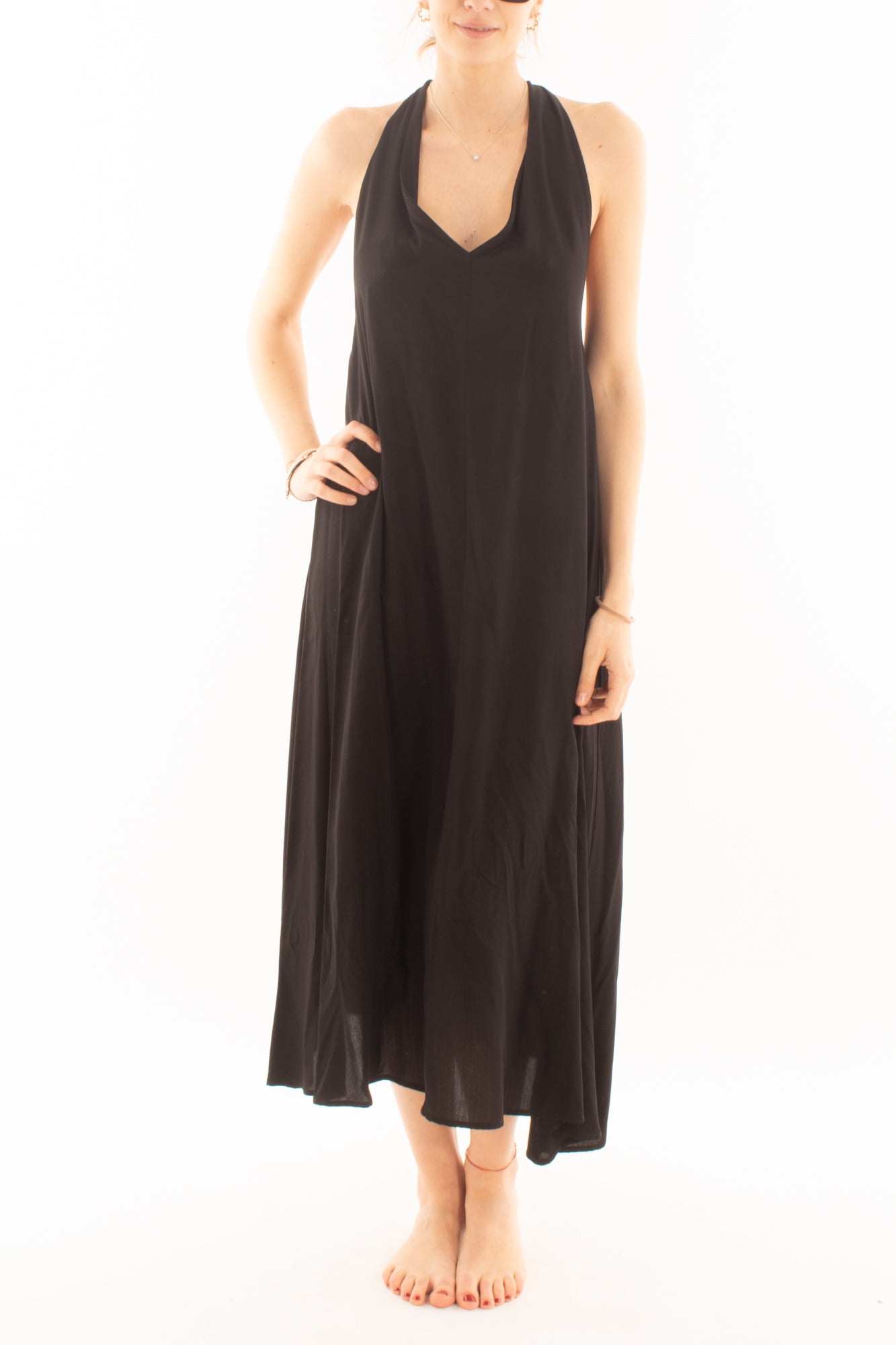 Scopri l'eleganza dell'abito lungo in viscosa con allacciatura al collo. Realizzato con tessuti morbidi e traspiranti, offre un comfort eccezionale e una silhouette raffinata. Perfetto per eventi speciali o serate eleganti, questo abito esalta la tua femminilità con stile e grazia.