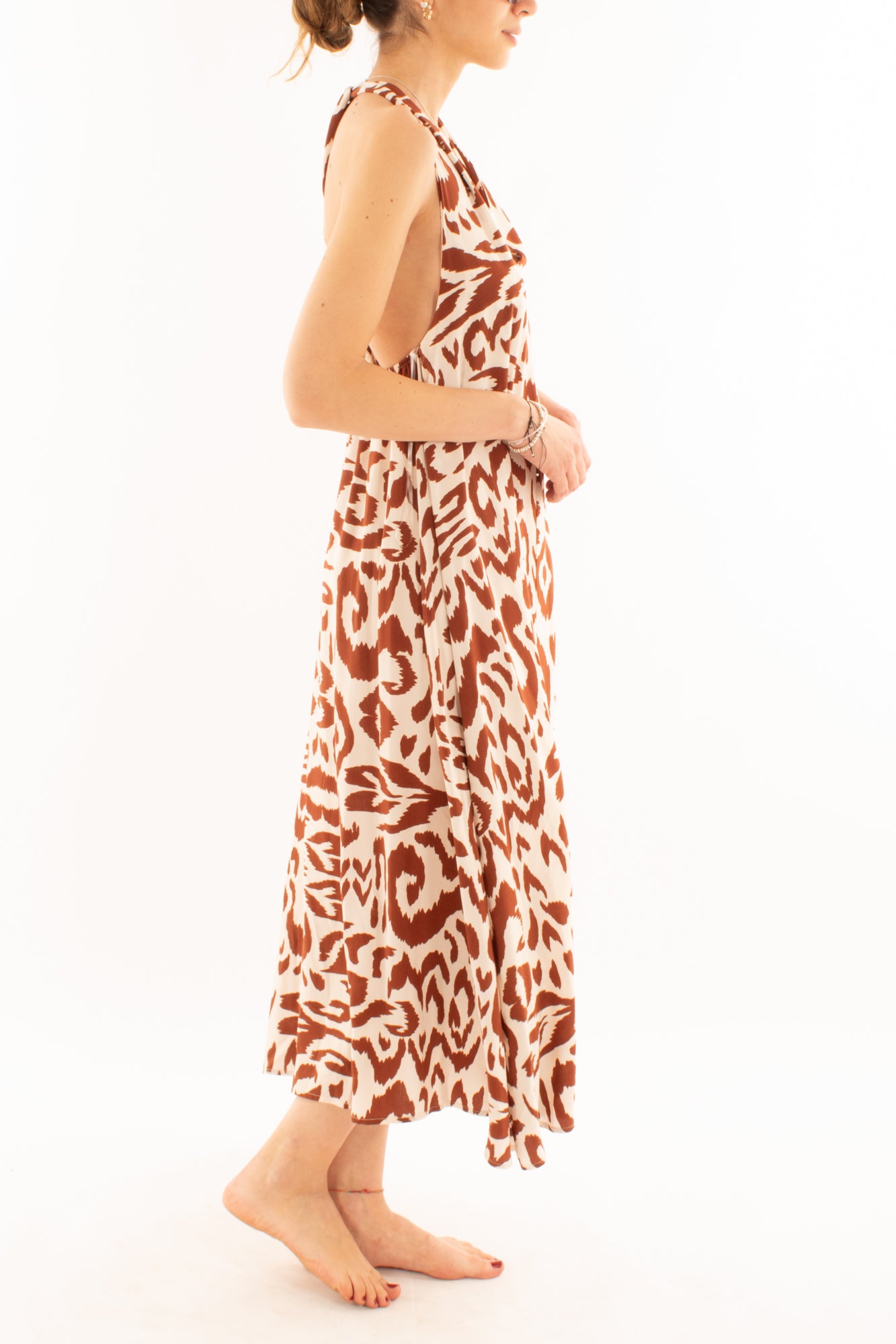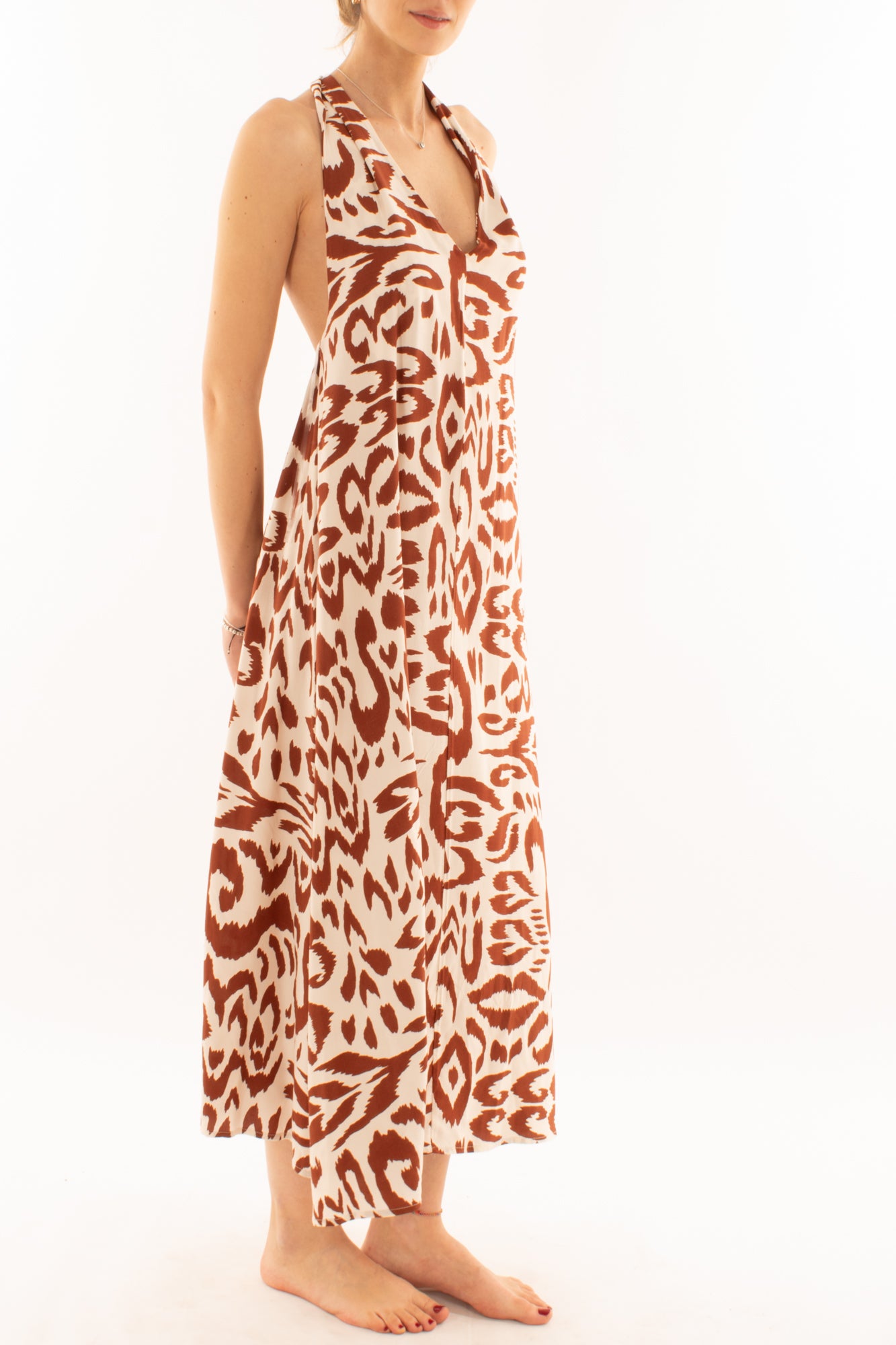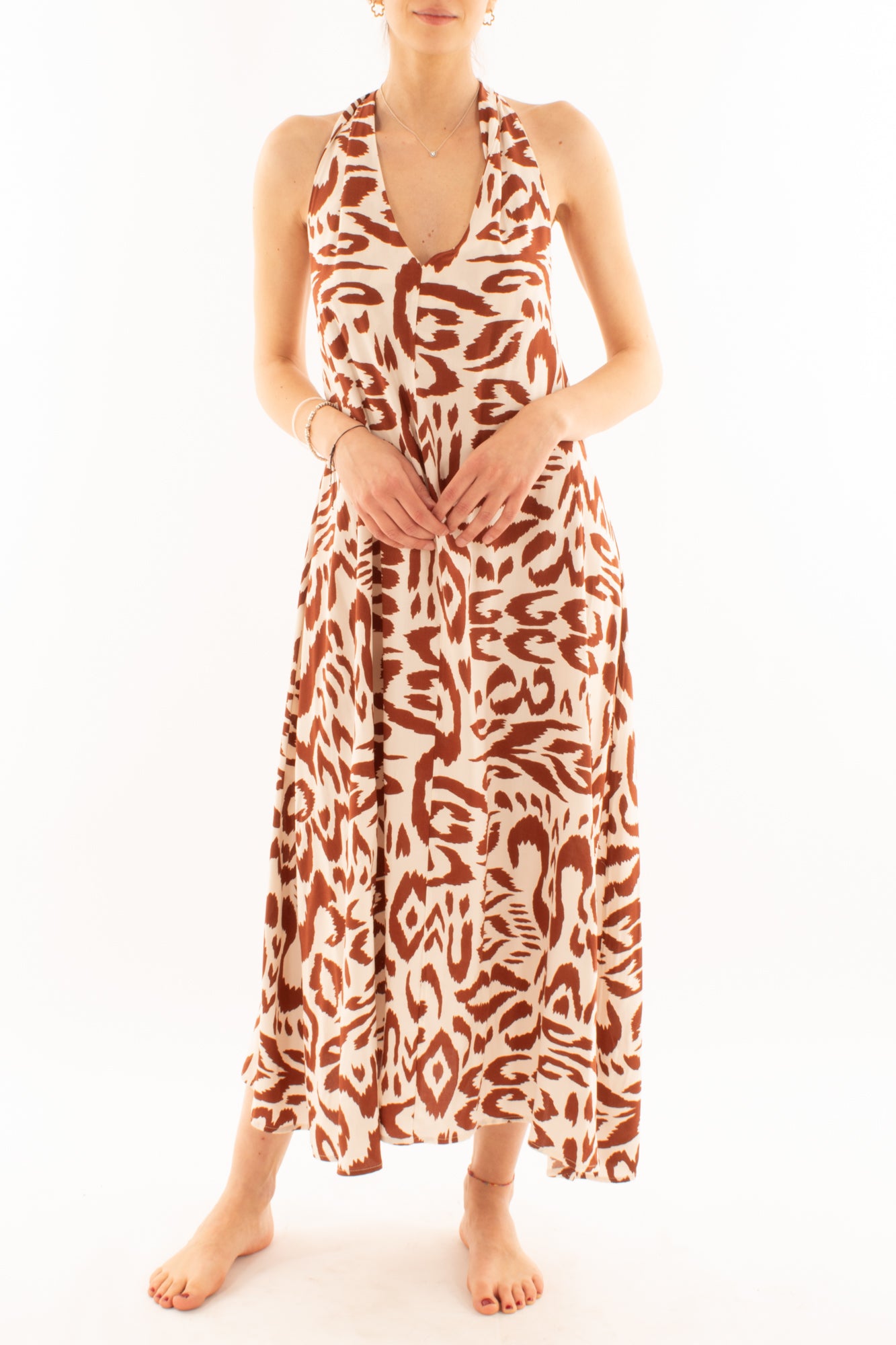 Abito allacciato al collo fantasia da Donna Metoo - Tabacco
