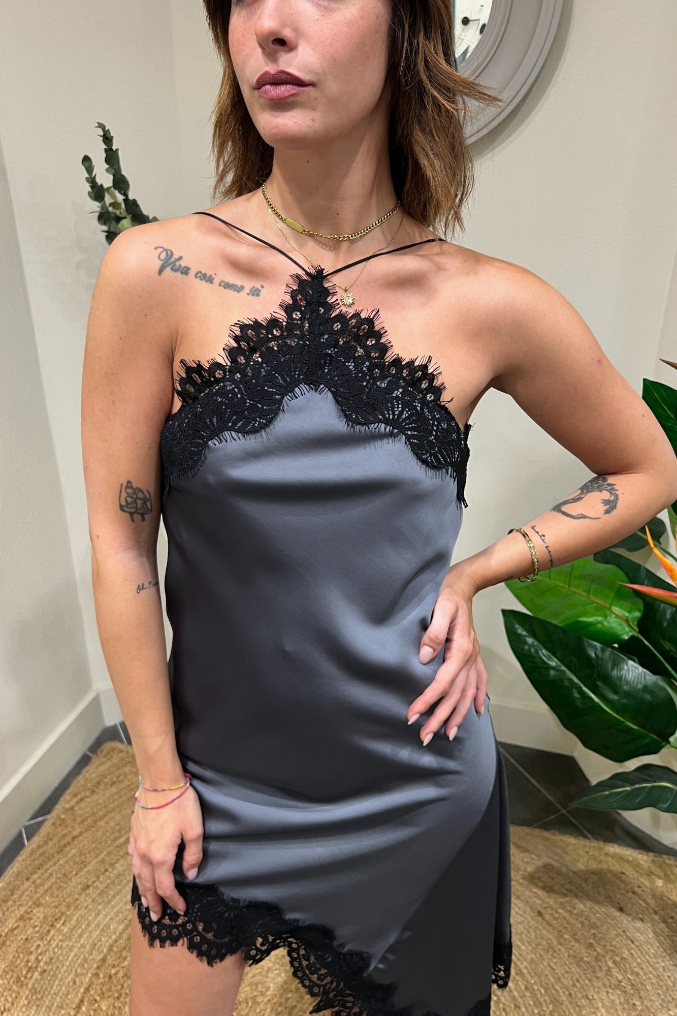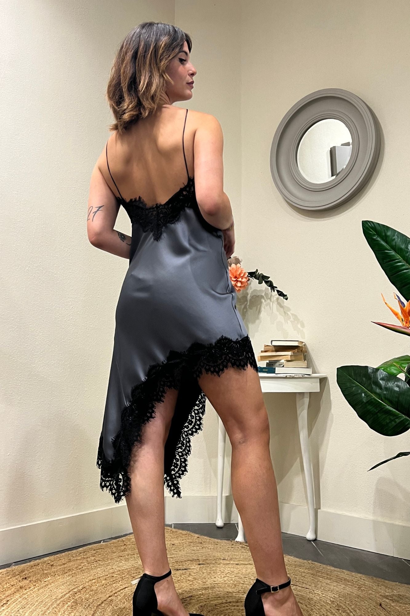 Abito asimmetrico in raso con profili di pizzo: un capo elegante e sensuale per le tue serate speciali. ? La silhouette moderna e il tocco romantico del pizzo creano un mix perfetto. #AbitoRaso #Pizzo #Asimmetrico #ModaElegante #OutfitSerata