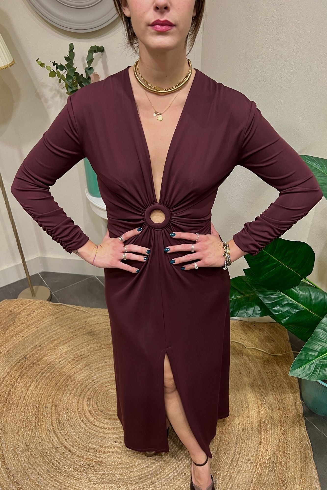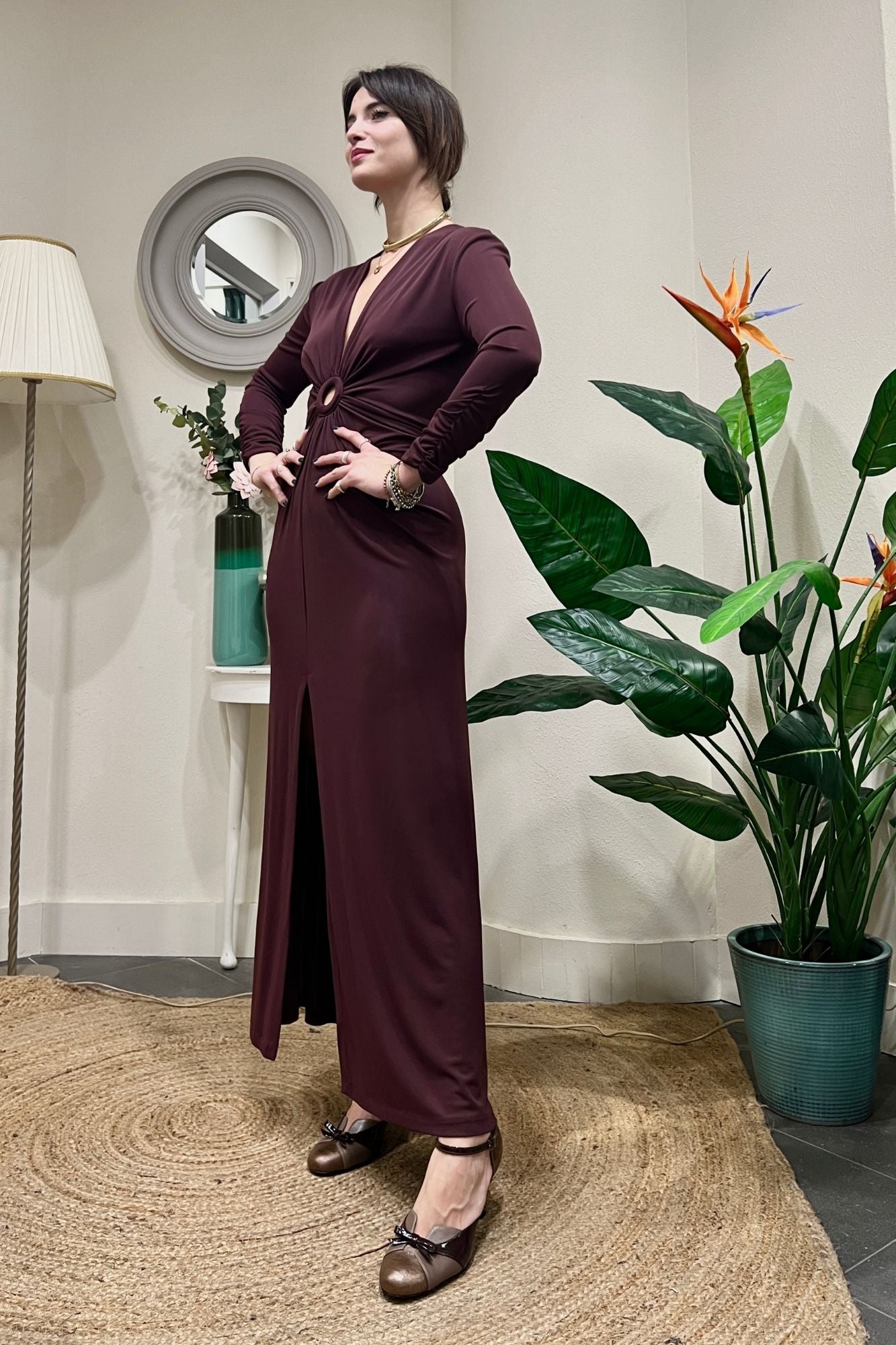 Abito lungo con manica lunga arricciata e anello, un dettaglio che aggiunge eleganza. ?? In tessuto fluido, valorizza la figura con classe. Un capo perfetto per un look sofisticato. #AbitoLungo #DettagliDiStile #ModaDonna #Eleganza #NewCollection