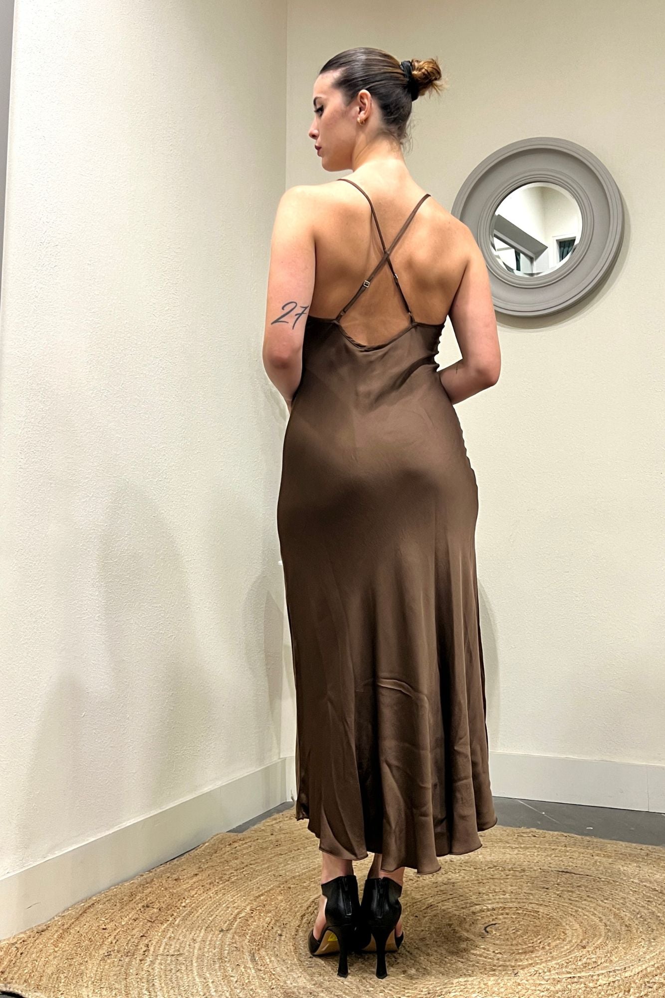 Eleva il tuo stile con il nostro abito lungo con bretellina incrociata sulla schiena. Questo design sofisticato offre un tocco di eleganza e sensualità. Perfetto per serate speciali e occasioni importanti. #AbitoLungo #StileElegante #SchienaScoperta #ModaDonna #NuoviArrivi