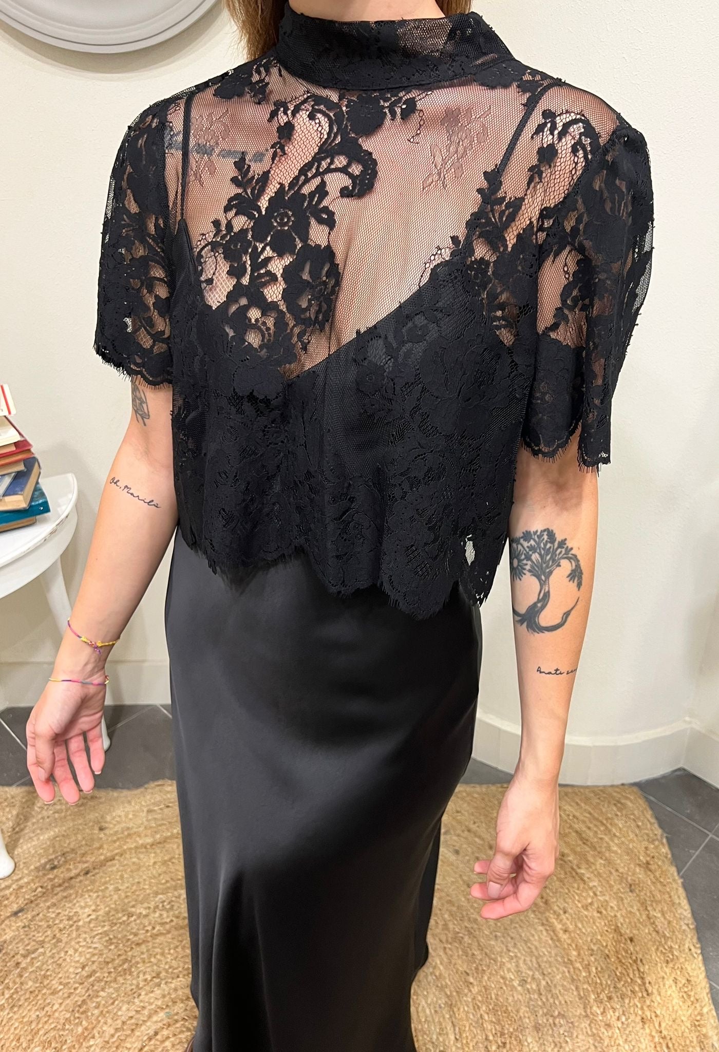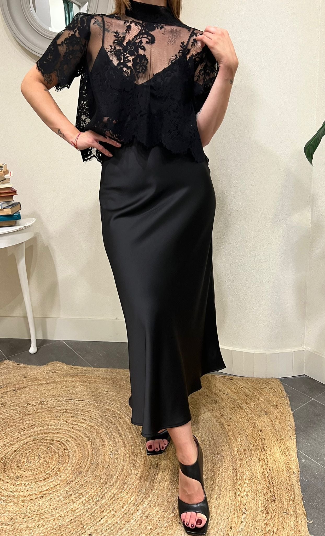 Abito con cappa di pizzo Imperial Nero