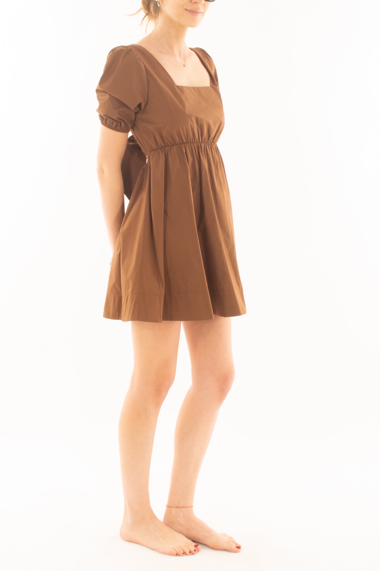 Abito corto a mezze maniche con fiocco sulla schiena, perfetto per ogni occasione. Realizzato con tessuti di alta qualità, offre comfort e stile. Il design elegante e il dettaglio del fiocco aggiungono un tocco di raffinatezza, rendendolo ideale per un look chic e femminile.