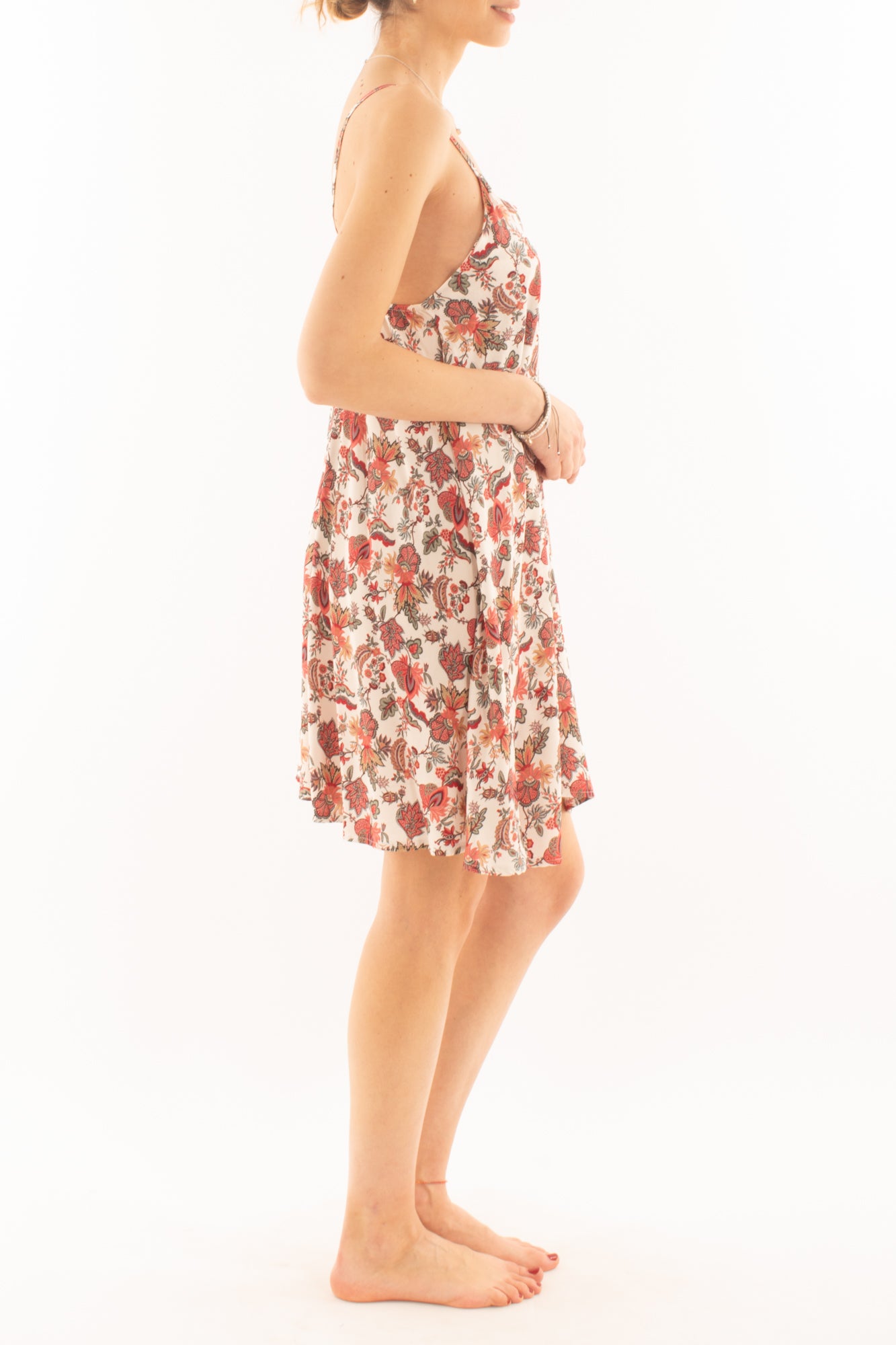 "Scopri l'eleganza senza tempo di questo abito corto a bretellina in una vivace fantasia. Perfetto per ogni occasione, il suo design unico cattura lo sguardo e aggiunge un tocco di stile al tuo guardaroba estivo