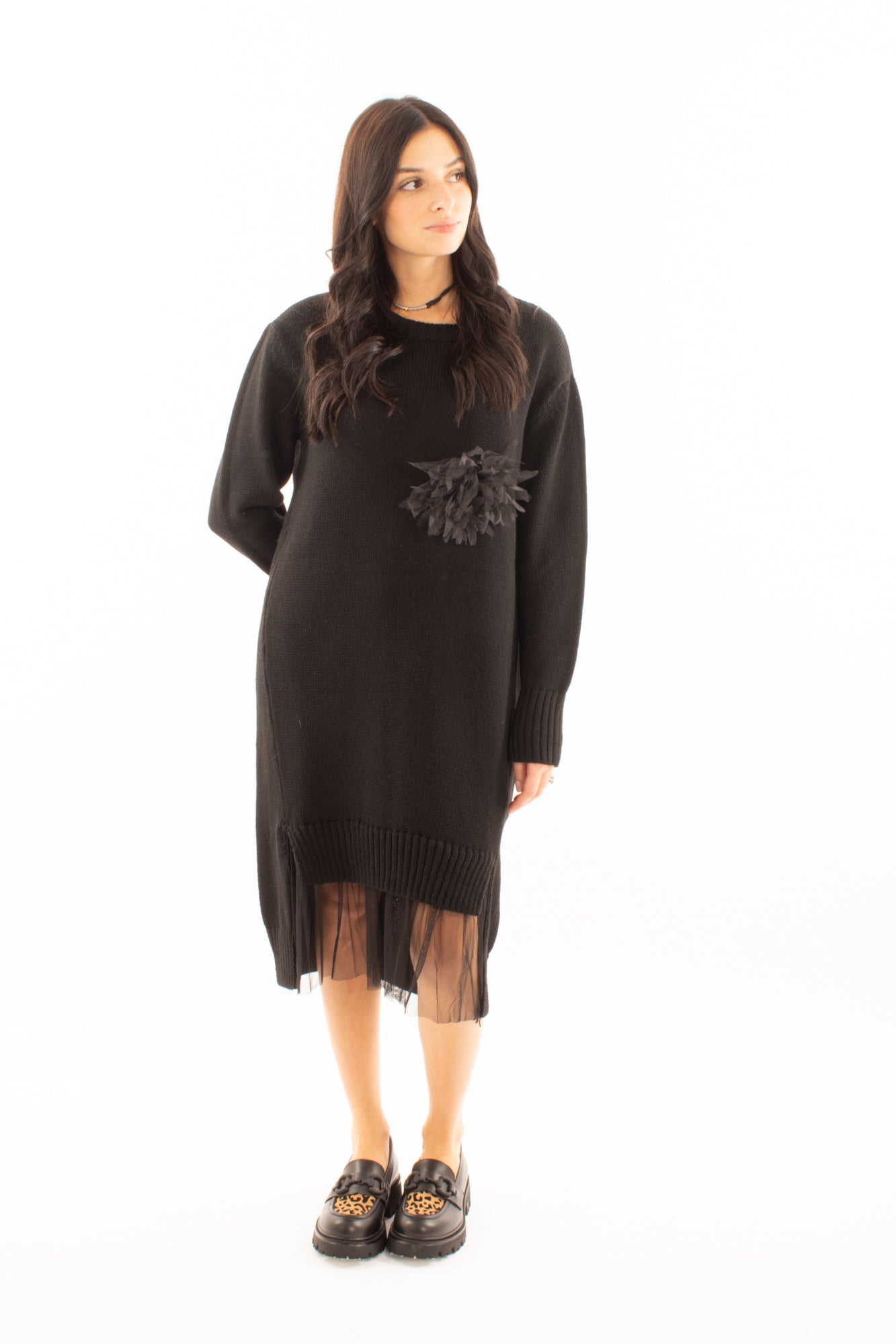 Scopri l'abito dalle prestazioni uniche! Con un girocollo di lana ed un fondo realizzato in tulle, offre stile, comfort e resistenza estrema. Ideale per giornate di lavoro o momenti di relax.