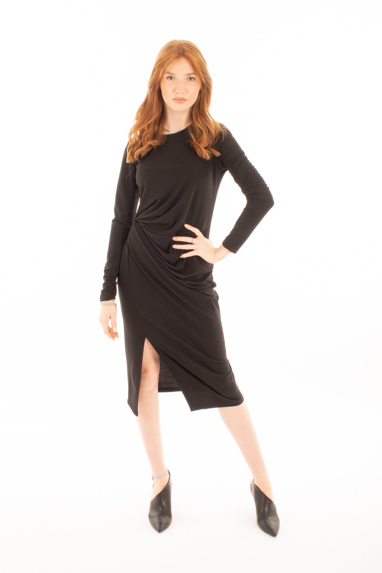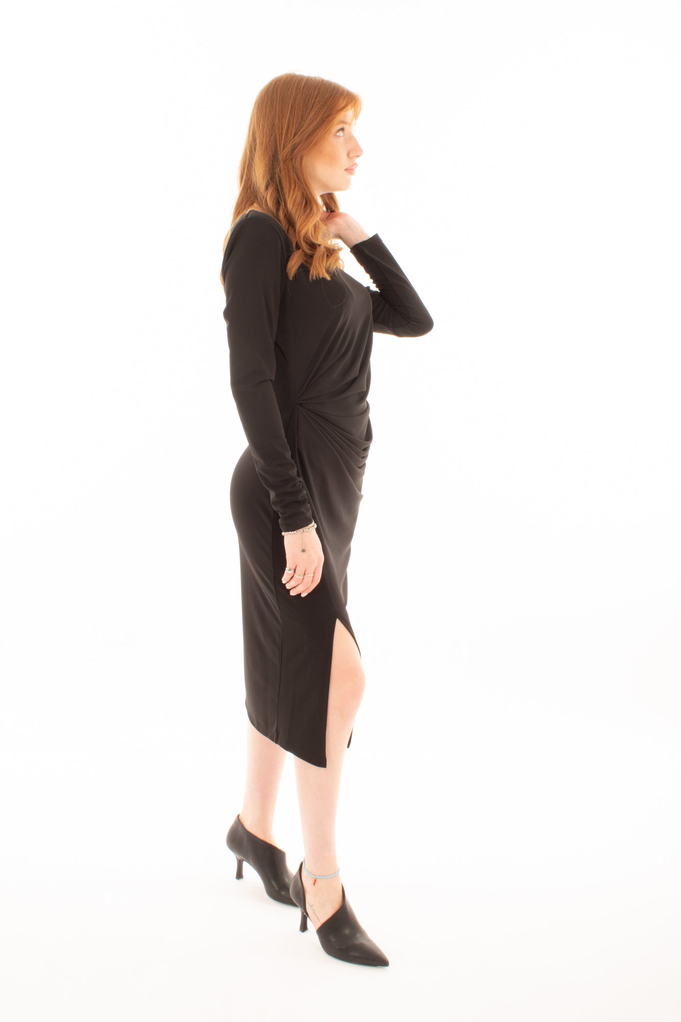 L'abito lungo è un must-have nel guardaroba di ogni donna. Con il drappeggio di lato, questo abito lungo e femminile dona un'allure elegante e sofisticata. Una silhouette raffinata per un look impeccabile in ogni occasione.