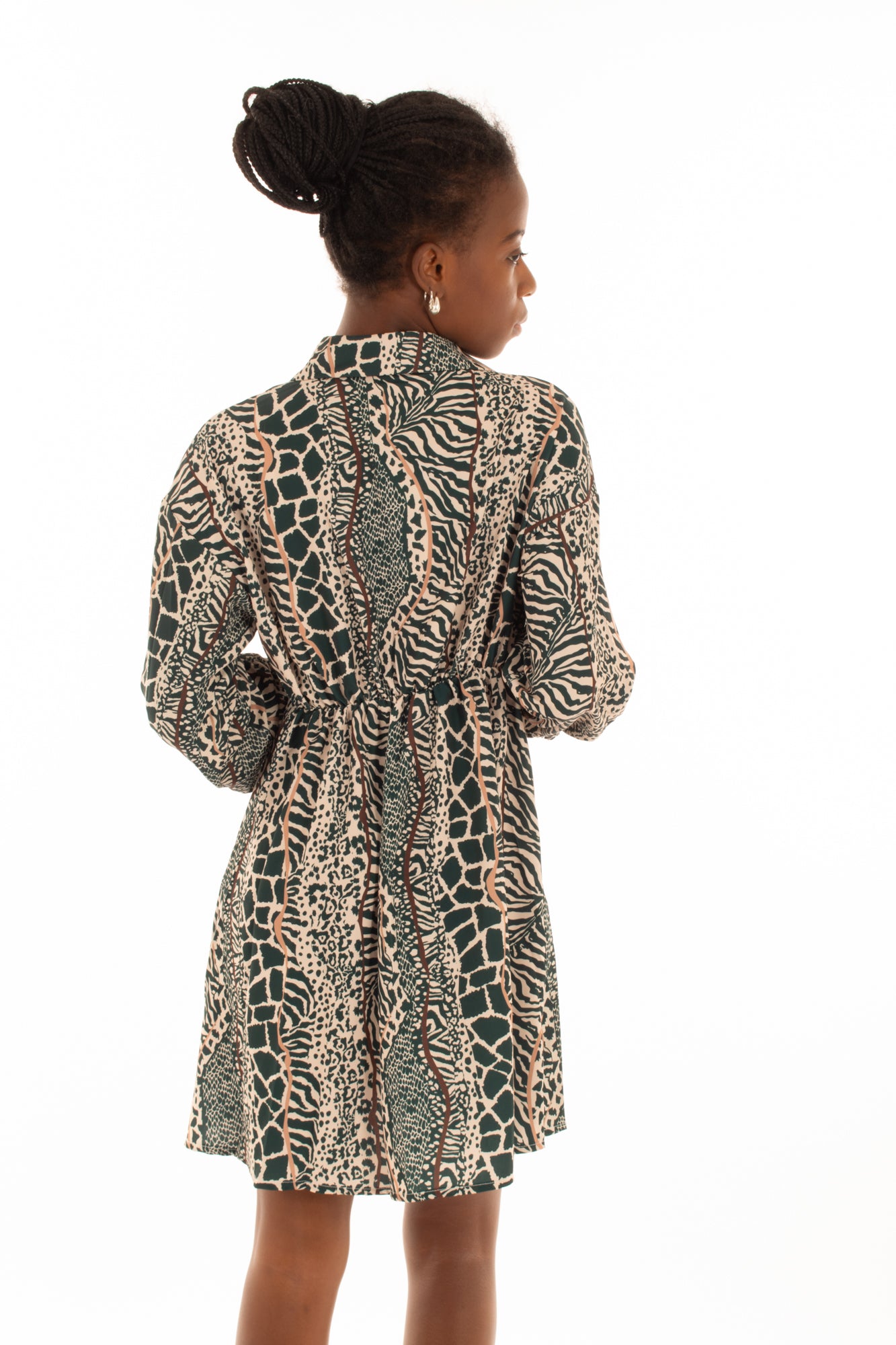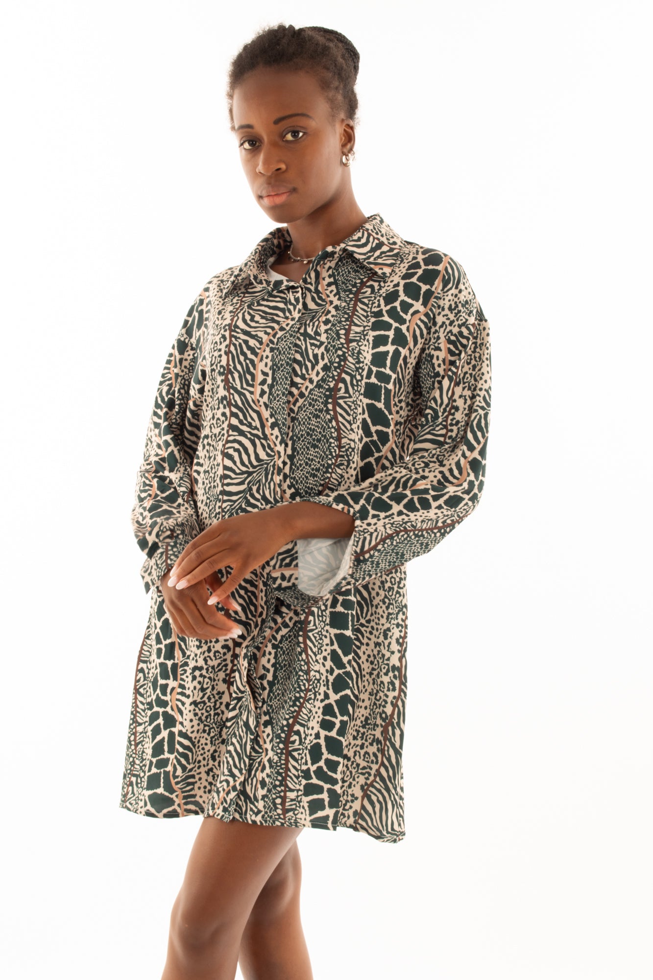 Rinnovare il proprio guardaroba con l'abito chemisier fantasia: realizzato in poliestere leggero e soffice, con arricciature su schiena per un look sensuale. Una scelta di stile pratica e confortevole, sempre trendy.